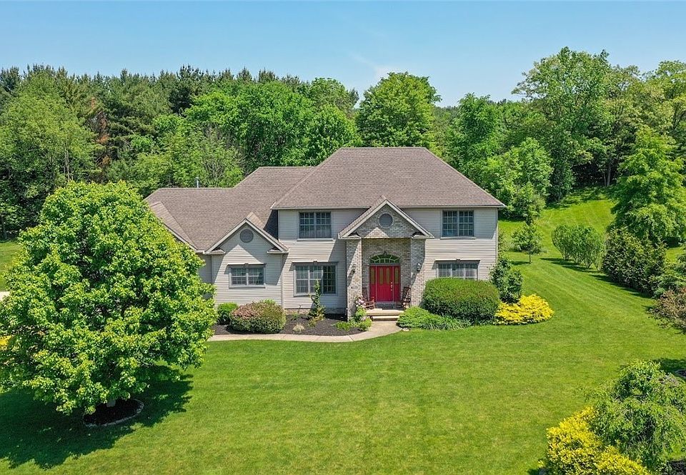 Welcome to your dream home! This stunning colonial boasts 4 bedrooms, 4 full baths, and an array of features designed for the ultimate in comfort and entertainment. Enhanced by high ceilings, custom moldings, an abundance of natural light, and 2 gas fireplaces, each room exudes cozy comfort. The spacious, open floor plan includes a first floor Office and Laundry Room for added convenience. Cooks delight Kitchen features granite countertops, dual wall ovens, gas cooktop, and large center island/breakfast bar opens to Family Room with 12 ft. ceiling and gas fireplace surrounded by custom built-ins. Upstairs you will find a spacious Master Bedroom with large walk in closet and glam bath boasting a jacuzzi tub, walk-in shower, and double sinks. 3 other Bedrooms and a third Full Bath complete the second floor. A fourth Full Bath in the finished basement makes entertaining a breeze! Enjoy hosting gatherings in the pool table/game room, or relax outdoors on the deck. Situated on nearly an acre lot, the property offers privacy and room to roam, while the triple garage and widened driveway provide ample parking. The entirety of the home is equipped with a security system to help you feel at ease in this quiet cul-de-sac neighborhood. There is no HOA! All appliances, HVAC, and sump pump are new within the last 4 years. Don't miss your chance to make this exquisite home yours!
