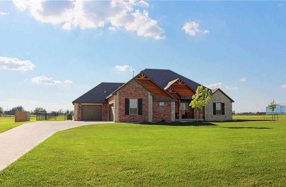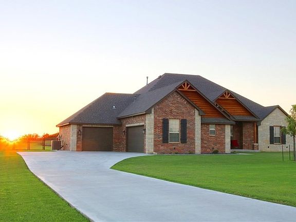 Impeccable 3 bed 2.5 bath home on 3 acres in Wilshire Farms located in the Yukon Schools. Home has a unique & desirable layout with lots of space. You are welcomed in the home by a study on your left. A formal living room with a double sided fireplace on the right that opens up into the beautifully large kitchen/dining/living room. The living & dining feature large windows that lookout over the acreage & wonderful sunsets. Kitchen features granite countertops, big island, gas cooktop & pantry. Enjoy the large game room off main living w/ access to the back patio. Secondary bedrooms share a Jack & Jill bath w/ private shower area. The master suite are sure to impress. Master closet connects the laundry room to the master bath making a fantastic layout that is very efficient! Mudbench is just inside garage. Oversized 3rd garage houses a walkin safe room. SPECIAL: SELLER TO LEAVE ZER0-TURN MOWER & SPECIAL-SIZED FRIDGE (Both < 2 yrs old) FOR ANY ACCEPTED CONTRACTS THAT CLOSE BY DEC 31st.