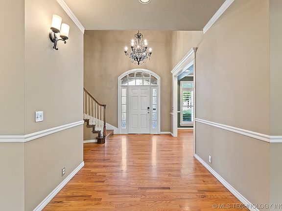 Lovely home in beautiful Holland Pointe, located in Darnaby Elementary district and across from Holland Hall School! This house is situated on a very large lot on a quiet cul-de-sac. Sprawling, private backyard with patio, deck, pergola and fire pit. Large primary suite on first floor with a lot of natural light, access to the back patio, large bathroom and double closets. 2nd downstairs bedroom currently doubles as a home gym. Large office with built-ins and a private exterior entrance. Very spacious utility room with sink, built-in ironing board and many cabinets. 2 staircases lead to 3 bedrooms and 2 full baths upstairs, a very large game/bonus room and 3 walk-out accesses to the attic. Storage galore! The oversized garage has ample shelving and a work area. New roof in 2019 with GAF lifetime shingles. All 3 HVAC systems have been replaced in recent years. This house has been well-maintained and loved and is ready for the perfect family to call it home! Don't miss this true gem!