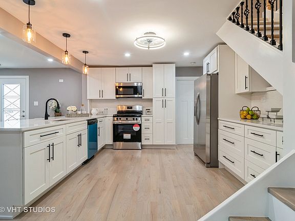 FULLY REHABBED HOME ON A LARGE CORNER LOT. BRAND NEW KITCHEN WITH MODERN STYLE CABINETS AND BRAND NEW APPLIANCES. TWO FULL, MODERN BATHROOMS. LARGE MASTER BEDROOM WITH FULL, PRIVATE BATH AND LARGE CLOSET. FINISHED ATTIC CAN BE AN EXTRA BEDROOM, OFFICE OR PLAY ROOM. ALL NEW WINDOWS, INTERIOR AND EXTERIOR DOORS. GLEAMING HARDWOOD FLOOR THROUGHOUT. GOOD SIZE LAUNDRY ROOM. ALL NEW LIGHT FIXTURE. ALL ROOMS PAINTED IN NEUTRAL COLORS. NEWER FURNACE AND BRAND A/C UNIT. NEW ROOF ON HOME AND GARAGE. NEW PLUMBING AND ELECTRIC. PLENTY OF PARKING SPACE, 2.5 CAR GARAGE.