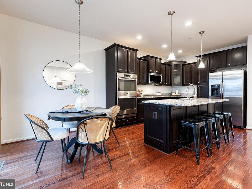 Don’t miss this stunning brick-front, expansive 2013 townhome in pristine condition, located in the sought-after Pointe at Arundel Preserves! Step inside to a welcoming foyer featuring beautiful dark hardwood floors and sun-filled large windows. The main entry level boasts an open-concept floor plan complete with a spacious living room, cozy gas fireplace in a second seating area off the kitchen, dining area, and a gourmet kitchen designed for both everyday living and entertaining. Enjoy stainless steel appliances, quality cabinetry, and little luxuries like a double oven, and a large center island with breakfast bar and in-island sink. Slider doors off the kitchen lead to a private deck — perfect for grilling or relaxing in fresh air outdoors. Upstairs, you’ll find three generous bedrooms, each with ample closet space and large windows for natural light, plus a full hallway bath with tub shower and convenient laundry area. Head to the luxurious primary suite, featuring a tray ceiling with fan, walk-in closet, and large en suite with a dual sink vanity and a walk-in shower. The lower level offers flexible living space ideal for another family room, home office, or gym, along with a half bath and direct access to your private two-car garage. Fresh paint throughout enhances the home’s modern appeal. Extra bonus information: the HVAC has always been regularly serviced, the air ducts have been cleaned, and there is a Sump pump with a battery backup. This home has been extremely well cared for and maintained with all of the best options! Enjoy incredible community amenities, including a pool, tot lots, walking paths, community center, and more! Conveniently located near shopping, dining, BWI Airport, Arundel Mills, Maryland Live Casino, and with easy access to 695, 95, 100, and other commuter routes. This home combines style, comfort, and unbeatable location — it’s move-in ready and waiting for you!