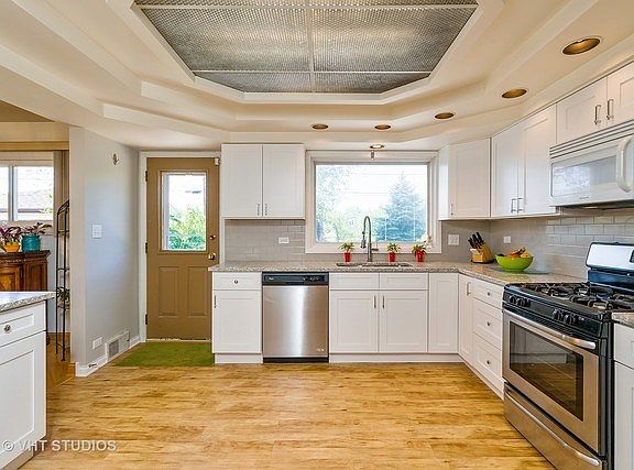 This is it! Awesome updated tri-level with a sub-basement. Beautiful vaulted living room and dining room with hardwood floors opens to recently remodeled kitchen. You'll love the breakfast bar, white cabinets, subway tile backsplash, quartz countertops and stainless steel appliances. Lower level walk-out has huge family room, updated powder room and laundry room including new washer and dryer. Spacious bedrooms include master bedroom with walk-in closet and private bath. The other 2 bedrooms have double closets. Plus a sub-basement is great for storage plus a finished office or 4th bedroom. Gorgeous fenced backyard with patio and brick fireplace/smoker overlooking open area behind home. Great location! Just blocks from the Oriole Park Aquatic Center (2 pools/tennis courts).