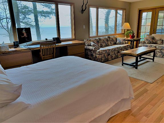 Nice things come in small packages! Well maintained beach house with private Lake Michigan frontage in Harbert. Spacious main level master with lake views, private bath and walk-in closet. Large living room with fireplace. Private wooded setting set away from the road. Unobstructed lake views. Coach House with three car garage and guest quarters with living area, bedroom and bath. Attached garage for possible family room conversion. Solid home, move-in condition, ready for your decorating touches. Nice things do come in small packages, and this property represents the best values on Lake Michigan in Harbor Country!