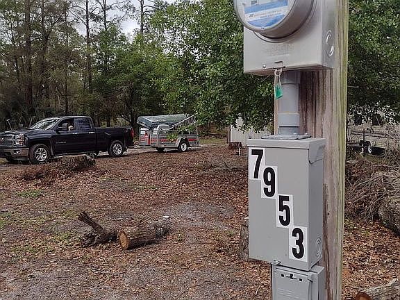 It has an 8x10 laundry kitchen. Two 30 amp. RV outlets. Two sewer hook ups. Two water hook ups for RV. 100 amp electric service. Ready to build on or pull modular on. Minimum size for stick build is 750 sqft. 84' of road frontage. Dead end road. Canal frontage 81'.5 ft. Lots of wildlife. The washer Dryer and refrigerator is not for sale. Shed stays. Sold#