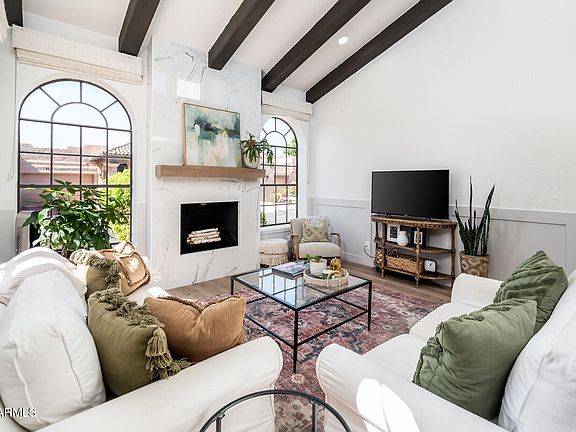 Welcome to La Villita, an exclusive gated community in the heart of Scottsdale. This updated 2-bed, 2-bath townhome pairs full-time comfort with lock-and-leave ease. A thoughtful reconfiguration opens the light, bright kitchen to the dining and living areas for a practical, open layout. The kitchen features timeless quartz countertops, white shaker cabinetry with soft-close hardware, a generous peninsula island with seating, ample storage, and stainless appliances—including a sleek side-by-side Samsung refrigerator and a beverage/wine cooler. Wood-look tile carries through the main spaces and sets a warm backdrop for the striking floor-to-ceiling fireplace clad in custom tile, vaulted beam ceilings, and custom shutters.