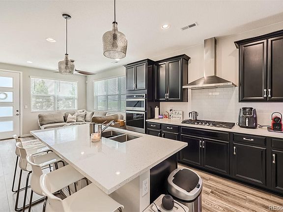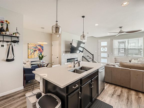 Welcome to this meticulously maintained townhome in the heart of the Sterling Ranch neighborhood in Littleton! This townhome is equipped with the latest in modern amenities, including a smart home system and many other upgrades! You can sense the pride on ownership as soon as you walk in the door! This beautiful townhome boasts 3 bedrooms and 3 bathrooms, providing ample space for relaxation and privacy. Enjoy mountain views on both levels! The open floor plan seamlessly connects the living, dining, and kitchen areas, creating an inviting atmosphere for both everyday living and entertaining. The Chef’s kitchen is a true centerpiece, featuring stainless steel appliances, Double Oven, a large island with seating, and plenty of cabinet space. Perfect for cooking and gathering with loved ones. Entertain guest or unwind after a long day by the electric fireplace in the Living Room, which most units don't have! Retreat upstairs to the luxurious primary suite which offers a private escape with a spacious bedroom and an en-suite bathroom complete with dual vanities, a soaking tub, and a separate shower. There are two additional bedrooms upstairs which could also be used as an office/workout room. The Laundry Room is conveniently located upstairs as well. The Attached two-car garage provides convenience and plenty of additional storage space. The smart garage door allows couriers to drop off packages inside the garage while you're away! Do you own an Electric Vehicle? Don't worry, the garage is already equipped to charge your vehicle. This unit only has 1 shared wall and sides to Open Space! Located in a quiet, family-friendly neighborhood with easy access to top-rated schools, parks, shopping centers, and major highways, making commutes a breeze. Amenities include: Trails, Clubhouse, Pool, Fitness Center, Playground, Cafe, and Brewery. Don't miss your chance to own this upgraded unit in an amazing neighborhood!