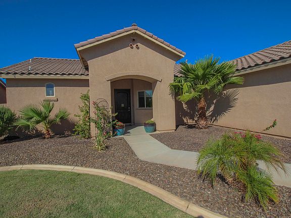 Immaculate Sierra Montana Pool Home! This property checks all the boxes featuring 3 large bedrooms and 2 bathrooms with over 1750 square feet! You will first notice the impeccable front landscape creating beautiful curb appeal. There is plenty of parking in the 2 car garage as well as large double gates with concrete continuing down the side of the home perfect for the RV or toys! Walk through the solid wood front door and into a gorgeous great room with split floor plan. Here you will find lots of tile flooring, brand new carpet just installed on October 22nd, vaulted ceilings, can lighting, upgraded fixtures and so much more! Lots of windows allow ample natural light to highlight the large living and dining room. The kitchen features a large granite island, lots of cabinet space, updated stainless steel appliances, and a pantry right off the laundry room! The primary bedroom has an unbelievable en suite bathroom with a large dual sink vanity, a huge walk in shower, and walk in closet. Enjoy a backyard paradise from underneath the full length covered patio overlooking an oversized pebble tech pool with Baja step. This backyard is setup to entertain and for the family to enjoy as this pool is gigantic! The home is finished off with features you would expect in a well cared for home including water softener, RO system, and fully serviced A/C system. This property is located in a growing area of Yuma which is close to shopping, gyms, Walmart and more! Don't miss this opportunity to be in one of the most desirable areas in Yuma!