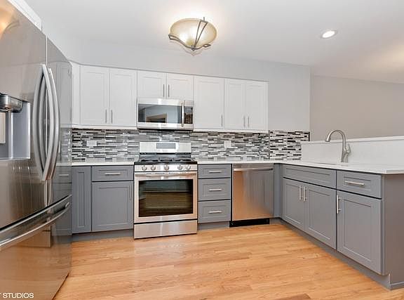 MUST SEE !!! JUST REHABBED, BEAUTIFUL OPEN KITCHEN WITH ALL NEW SS APPLIANCES. WHITE AND GREY CABINETS, CERAMIC TILE BACKSPLASH AND QUARTS COUNTERTOPS. ALL DONE TO PERFECTION. LAZY SUSAN AND VENTING OUT MICROWAVE!!! LARGE LIVING RM WITH PATIO DOOR TO LARGE 18X14 WOODEN DECK, IDEAL FOR SUMMER ENJOYMENT!!! HARDWOOD FLOORS IN THE ENTIRE HOME!! SPACIOUS 2 BDR, EACH WITH WALK IN CLOSET! 2.1 BATH, FINISHED BASEMENT WITH FULL BATH AND FAMILY RM! FRESHLY PAINTED! DESIGNER LIGHT FIXTURES! ALL NEW BLINDS. NOTHING TO DO, JUST MOVE IN!!! LOW ASSOCIATION FEE. GARAGE FRESHLY PAINTED AS WELL. CLOSE TO SCHOOLS AND TRANSPORTATION.