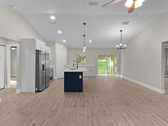 This beautiful MOVE-IN READY new construction home has all the features and finishes you're looking for in an affordable quality home. Come take a look at the large OPEN CONCEPT entertaining area featuring VAULTED CEILINGS, where the living/dining/kitchen areas combine. Notice the Luxury Vinyl throughout, ceiling fans in all the bedrooms, living room, and COVERED REAR LANAI, and QUARTZ COUNTERTOP in the kitchen and baths. The kitchen is equipped with Samsung stainless steel appliances, and a WALK-IN CORNER PANTRY. With it's SPLIT BEDROOM floor plan, the primary bedroom is through a doorway on the right side of the living area, and features a TRAY CEILING, WALK-IN CLOSET, and ENSUITE BATHROOM. This bathroom has DUAL SINKS, a SUNKEN TILED SHOWER, and a SEPARATE TOILET ROOM. The indoor laundry occupies the space between the primary bedroom door and the door to the garage. Moving to the other side of the house, you will find 2 bedrooms of a good size, with the guest bathroom between them. Access to the lanai and back yard is through the sliding doors located on the back wall of the home in the dining area. Call today to schedule a showing on this home, and you'll want to make it yours!