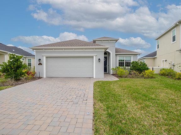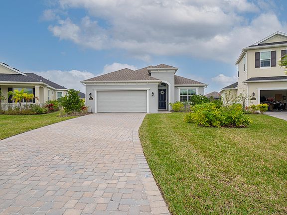 Discover simple luxury in this 2022 home nestled in Sendero Cove, Viera. With 3 bedrooms, 2 bathrooms, plus flex room (or 4th bedroom) this like-new residence offers a unique living experience...Upon approaching the home, the expansive driveway, accommodating over 6 cars, immediately captures your attention...Step into the welcoming entryway, and you will see beautiful, upgraded tile through all the main living areas, and the flex space...The great room concept showcases a kitchen with a large eat-in island, beautiful backsplash, modern pendant lights, and level 4 quartz countertops—a culinary haven...