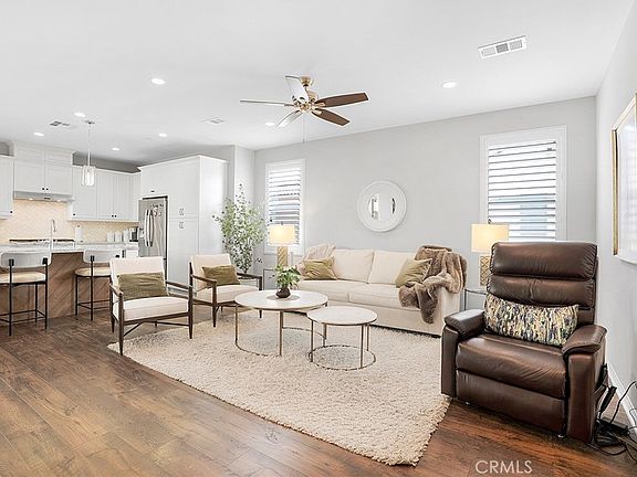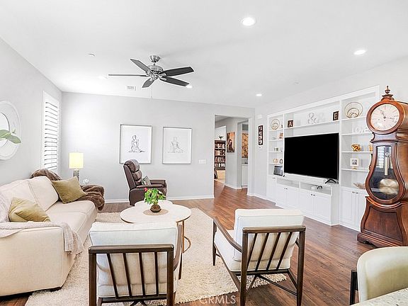 Beautiful Western Ranch Model detached single family home in the highly sought after 55 plus community of Auberge at Del Sur. The home has an additional room that can be use as a 3rd bedroom, office, or your choice. Open floor plan joining the kitchen, dining area and great room. The Kitchen boasts of a beautiful granite island & countertops, stainless steel appliances, Upgraded Kitchen BackSplash, Laminate Floors and plenty of European-style white thermofoil cabinetry and raised panel doors, Built-In Entertainment Center as well as built-in office Desk with Cabinets. This amazing home comes with the upgraded Covered Patio with automatic awning, ceiling fan w/ light, laundry room with a sink & side by side washer and dryer, pre-wired for solar panels, tankless water heater, Garage with Epoxy Flooring, low maintenance backyard with a relaxing water fountain, backyard fully paved, neutral interior paint, whole house fire sprinklers. A 2 car garage that offers storage cabinets and overhead storage racks. Auberge residents have full access to all of the Del Sur amenities that include 14 parks, 11 pools and miles of walking trails. This community has an impressive clubhouse that offers a fitness center, resort style heated swimming pool with spa, dog park, walking trails, bbq area, pickleball courts, and a tot lot for the visiting family. Auberge is center to many shopping centers and entertainment, fast and easy access to highways.