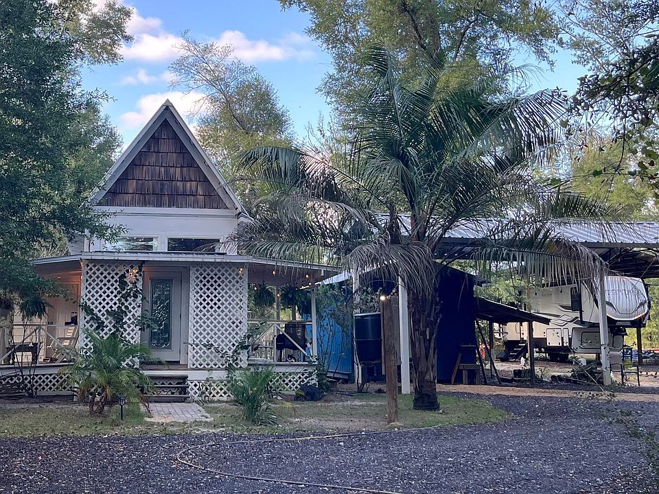 Discover peaceful country living in this beautifully crafted 1-bedroom, 1-bathroom white cabin nestled on 2 serene acres in Altha, FL. This cozy 468 sq ft home is full of character, featuring hickory hardwood floors, tongue-and-groove walls, and custom hickory cabinets that bring a warm, rustic elegance to the space. The cypress landing and gas stove with a buried propane tank add to the home's thoughtful details and efficiency.