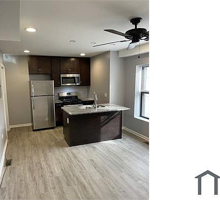Stainless appliances, granite kitchen including island, hardwood floors, and ceiling fans. Responsively managed building with CCTV, intercoms, and Amazon Key-enabled deliveries.