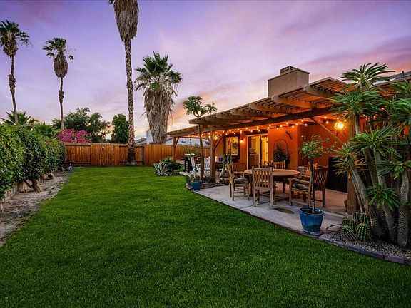 Welcome to 79595 Marigold Lane, a tastefully maintained residence in the heart of desirable North La Quinta. This inviting home features a brand-new roof, fresh exterior paint, and beautifully refinished Saltillo tile flooring that exudes warmth and rustic charm enhancing functionality for everyday living. The floor plan offers comfortable flow and flexible space for relaxing or entertaining. There is an office space that can easily be converted to a fourth bedroom (has closet). Stepping out to the backyard you are greeted by a backyard oasis, with lush landscaping, a covered awning that stretches full length of the home, upgraded fencing and magical lighting. You will dream of sitting under the patio and taking in the breathtaking sunsets. Surrounded by top-rated schools, nearby parks, and close to shopping, dining, and entertainment, this home combines classic California character with thoughtful updates. Whether you're looking for a full-time residence, seasonal getaway, or investment opportunity, this La Quinta gem offers value, style, and location.