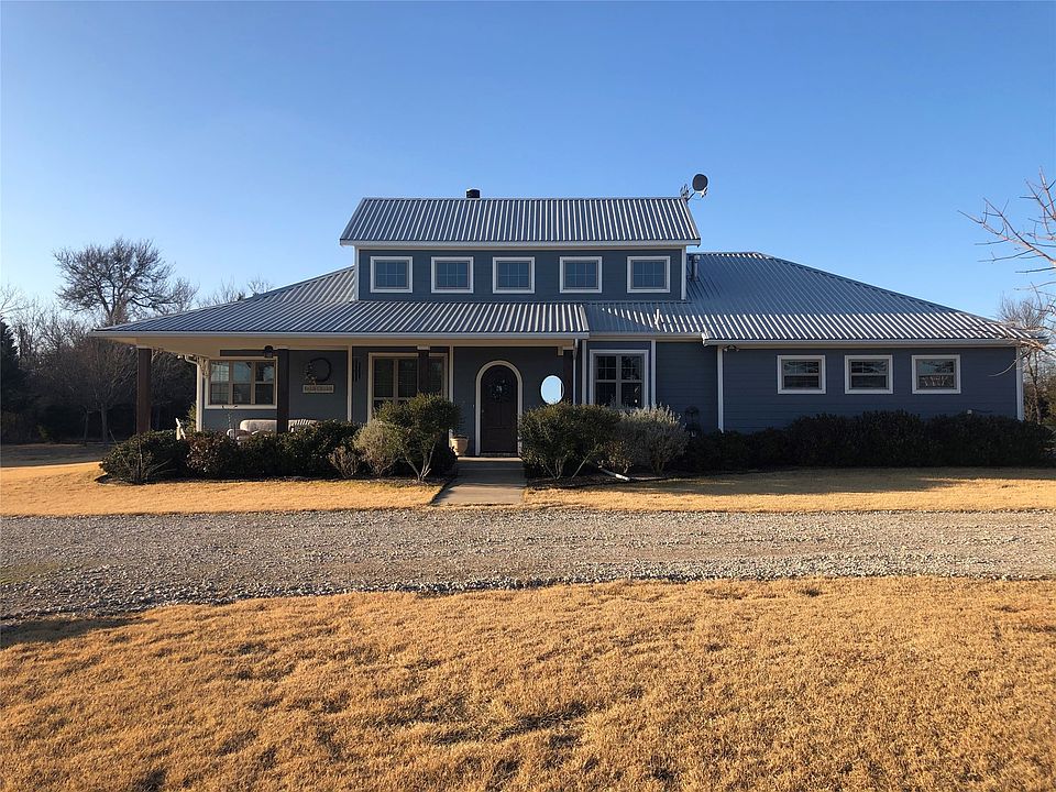 Gorgeous Hill Country style home on rolling 17 acres backing up to flowing creek & trees. Home features open spaces,18' ceilings in living & kitchen.Premium hardwood floors, KitchenAid & Whirlpool appls, built in refrig-freezer, solid wood kitchen island with prep sink, wine rack & chiller. Farm sink with quartz countertops & nook. Split bedroom arrangement, master his-her vanities, soaking tub, oversized walk-in shower with three water features & walk-in closet. Guest bedroom features mini kitchen & large closet. 3rd bedroom has double closets. Enclosed back patio with screened windows, ceiling fan, vintage farm sink for entertaining & extended outdoor patio with fire pit. Shop is 40 X 60 and has a full bath.