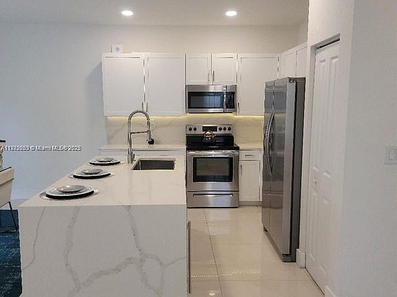Beautiful and modern corner unit located at 796 NE 208th Ter #796, Miami Gardens, FL 33179. This spacious home features elegant porcelain floors downstairs and warm wood laminate upstairs, offering both style and comfort. The sleek kitchen boasts quartz countertops, perfect for cooking and entertaining. Enjoy added privacy and outdoor living with a fenced-in patio area. As a corner unit, it provides extra natural light and more space. Situated in an excellent location with easy access to major highways, shopping, and schools. Don't miss the opportunity to live in this contemporary and well-appointed home!