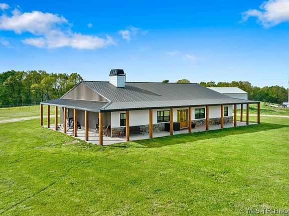 Introducing a spectacular 93-acre horse or cattle farm nestled in the picturesque surroundings just 5 minutes from charming Siloam Springs, Arkansas! This property is a perfect blend of functionality and luxury, offering the best of both worlds. Sprawling across 93 acres, this property provides ample space for various activities. A well-equipped 7-stall horse barn with an office, half-bath, and lab ensures top-notch care for your horses. The 250x150 roping arena adds excitement and functionality to the space. A newly built 2,424 square foot ranch-style home boasts modern amenities and a captivating view. With four bedrooms, two baths, and an open floor plan, it's designed for comfort and luxury. Enjoy the serenity of the countryside from the large 3/4 wrap covered front porch. The property is fully-fenced and cross-fenced, creating four large pastures for your horses or cattle to roam freely. A beautiful pond adds charm to the landscape, complemented by automatic waterers to ensure a constant water supply for your animals. The property includes outbuildings, cattle corrals, and a loading/working chute, providing convenience and versatility. Revel in the luxurious details of the ranch-style home, featuring walk-in closets that provide ample storage space. The vaulted ceilings add a sense of grandeur to the living spaces, creating an open and airy atmosphere. Cozy up by the wood-burning fireplace for warmth and ambiance during colder evenings. A substantial 4,104 square foot horse barn stands proudly on the property, offering spacious and well-designed stalls for your horses. This facility is tailored to meet the needs of horse enthusiasts, providing a comfortable and secure space for your equine companions. Whether you're a horse enthusiast, cattle rancher, or someone seeking a tranquil rural retreat, this property offers a unique opportunity to embrace a lifestyle of comfort and convenience.
