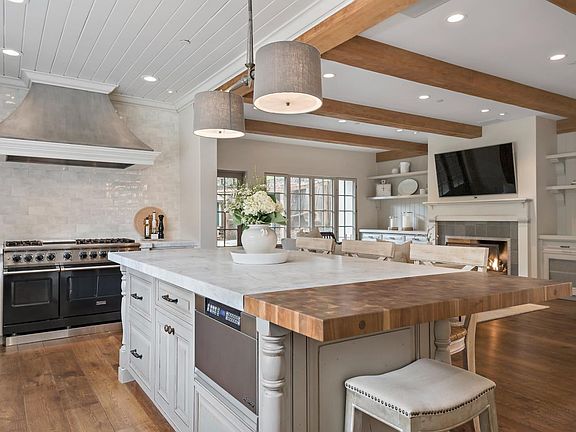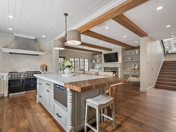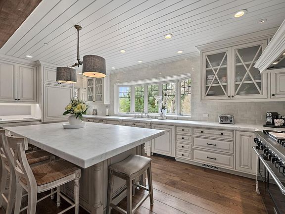 - Kitchen: Garbage Disposal, Microwave, Dishwasher, Oven - Self Cleaning, 220 Volt Outlet, Pantry, Island, Exhaust Fan, Hood Over Range, Warming Drawer, Oven - Double, Wine Refrigerator, Countertop - Marble, Oven - Gas, Refrigerator
