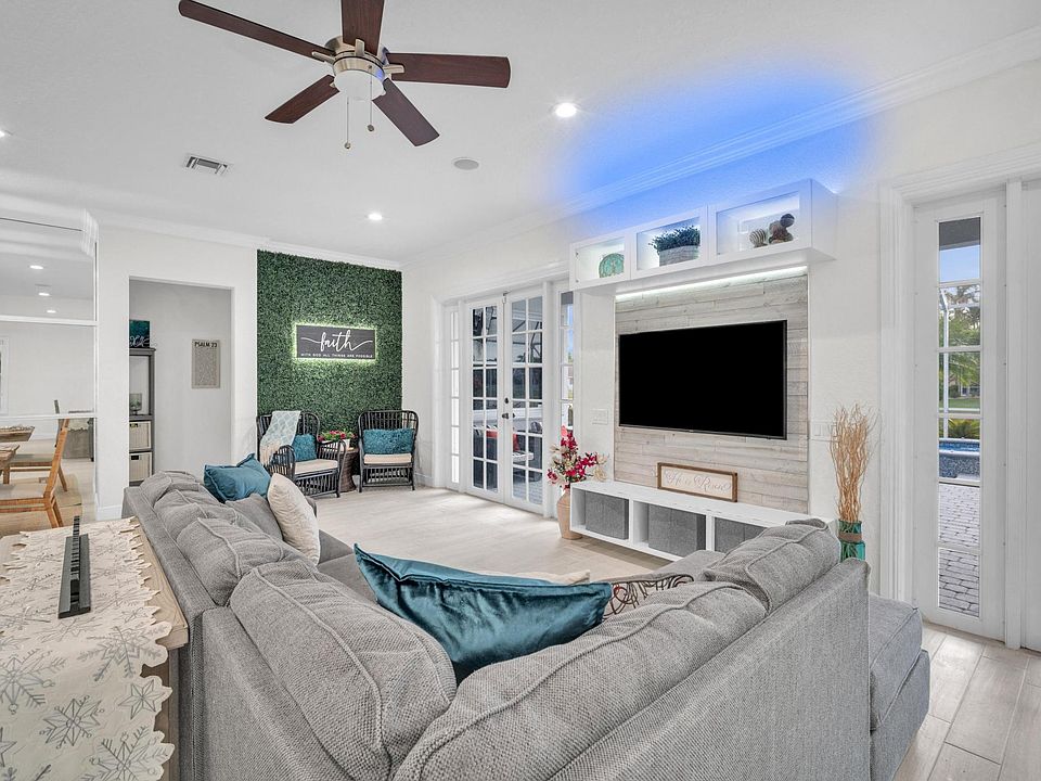 Screened-in pool areaHot tubSerene backyard oasisFrench doorsWater views