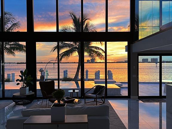 Welcome to an extraordinary waterfront retreat in the heart of the gated community of Biscayne Point Island, where stunning breathtaking wide water views capture unforgettable sunsets. Originally designed by renowned architect Barry Sugarman, this designer residence seamlessly blends modern waterfront living with a boater’s paradise. Featuring 98 feet of water frontage, this 5 bedroom, 6.5 bath residence is a sanctuary for boating enthusiasts, boasting a stunning primary suite, rare 16-foot-high ceilings, multiple entertaining spaces, and an expansive living room designed to impress. Thoughtfully crafted with sophistication and comfort in mind, the home exudes elegance and timeless charm.