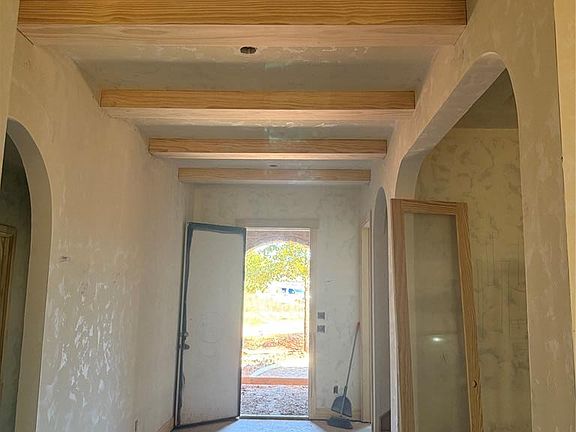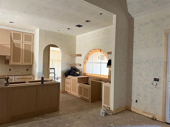 Situated on a 1.5 acre wooded lot with shared access to a private pond, this modern Tudor residence masterfully pairs timeless architecture with the highest level of custom finish-out. Every detail from the white oak flooring to the custom crafted cabinetry reflects an elevated commitment to design and craftsmanship. The flowing floor plan is as functional as it is striking. A gourmet kitchen with premium Frigidaire Pro appliances, including a 36” range and additional oven in the pantry and an oversized island with custom seating anchors the home, opening seamlessly into a dramatic living area with beamed ceilings and beautiful rock fireplace. The primary suite is a retreat unto itself, highlighted by a custom wood accent wall and a spa-like bath with quartz finishes, an oversized walk-in shower, and a soaking tub. Outdoors, the generous grounds allow for both privacy and possibility. Positioned just minutes from I-35 and State Highway 66, this home delivers the perfect balance of luxury, livability, and location. A residence of this caliber is more than a home, it’s a statement of style and space, designed for those who appreciate the very best in Aracadia living.