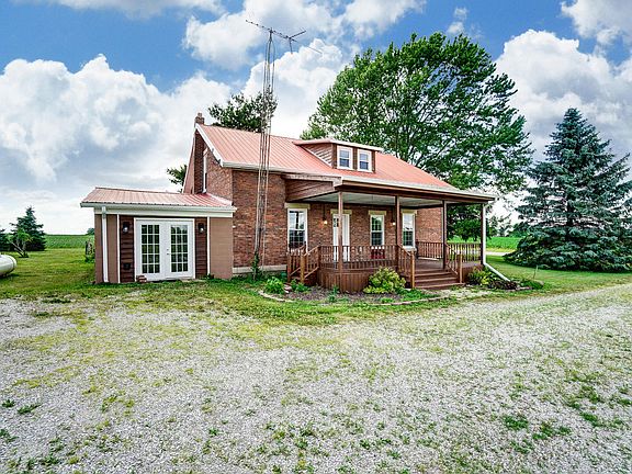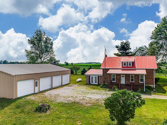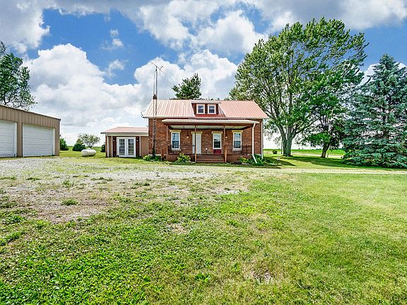 Would you like to own a piece of history? This charming home sits on over 2 acres in Miami East school district. The original part of this home was an old schoolhouse built in 1860. An original bookcase remains in the living room and also features hardwood flooring and a pellet stove. The kitchen has newer laminate flooring. All kitchen appliances convey. There is a large mudroom/utility room off the kitchen and an attached addition that was being used a family room. A single bedroom rounds off the first floor. Upstairs there is a large landing that would make a great office/study. A large hall closet across from the two bedrooms could easily be finished off into a half bath. On the exterior you will find an amazing porch, a 4 bay garage with indoor basketball hoop, an old silo being used for storage and gorgeous grounds. You don't want to miss this one!