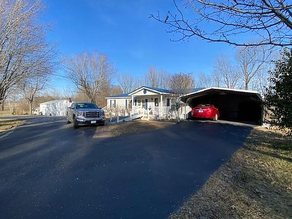 Three bedroom two bath double wide sitting on almost an acre in Hanson. Has a permanent foundation. Lots of updates. Roof, central heat and air, both bathrooms, and kitchen UPDATES! Circle driveway. 30 x 40 Detached garage with power and floor in concrete. Large backyard with vinyl fencing that backs up to farm. Detach carport next to house and adorable front porch!! Come see the coziness!