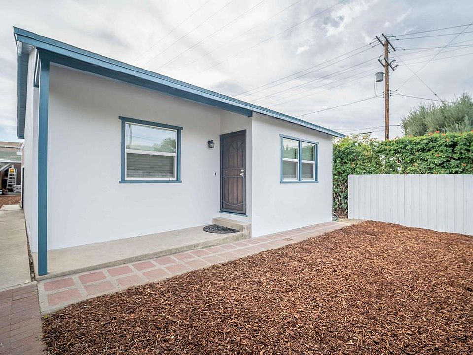 Love at first sight! Perfect starter home with great bones. This 1956 traditional house was recently painted white throughout with beautiful blue trim accents.The newly remodeled kitchen (2016) features glistening stainless steel Samsung appliances, black quartz countertops, white cabinets, and a peninsula island. Bathroom and HVAC are newly renovated as well (2016). The newly landscaped front and back yards have lemon trees, a 118 Sq Ft shed, and they are fully fenced with black wrought iron fencing