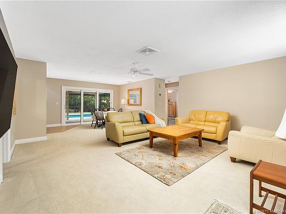 Inside, the home shines with thoughtful renovations and finishes. The light-filled kitchen features granite countertops, custom cabinetry, oak flooring and GE and Bosch appliances. Recent upgrades include impact sliders and windows, impact garage door, porch roof and water heater. The showpiece is the expansive outdoor living area, 1,350 +/- sq. ft. of screened pool deck & porch. With I-95 and shopping just minutes away, this home offers the best of serene living and everyday convenience, come discover the perfect balance.