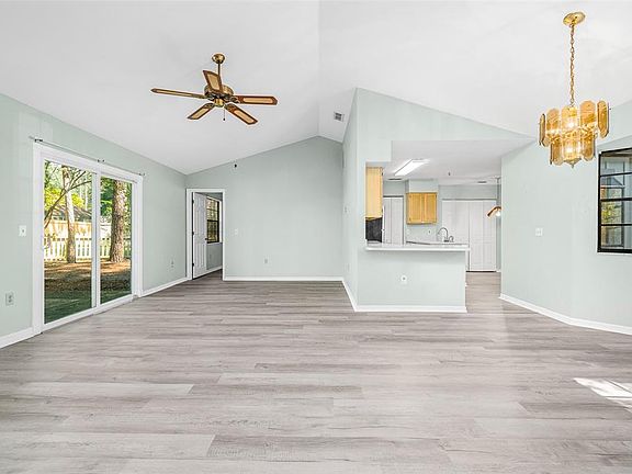 Roof replaced in 2024! New Hot Water Tank! New AC Compressor! Welcome to this cozy, 3-bedroom, 2-bath single-family home, located on a tree-filled, corner lot in the desirable Haile Plantation neighborhood of Planters Grove. Built in 1989 and offering approximately 1,340 sq ft of living space, this residence has a modern-day cottage look and feel. The home boasts luxury vinyl flooring throughout, a spacious living area with a ceiling fan, and easy transition into the kitchen and dining space. The great room features a wood-burning fireplace and sliding glass doors that open to a patio. The kitchen includes a breakfast bar and pantry closet — ideal for everyday convenience and for entertaining friends or family. The primary bedroom offers a walk-in closet and en suite bath with tub/shower combo. Outside, the home sits on a roughly 0.22-acre lot with mature trees and backyard space, offering a woodsy, cottage vibe. A two-car attached garage provides ample parking and storage. Planters Grove, a sub-association of Haile Plantation, is a well-planned area that features walking trails, green spaces, shops and restaurants, playgrounds, and Hawkstone Country Club, a social and golf club many in Haile belong to. Contact Hawkstone for membership pricing.