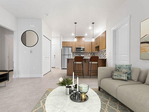 Welcome to resort-style living at 10 West, a brand-new 4-story building unlike anything the Tri-Cities has seen before! Your BRAND NEW, pet-friendly apartment home has an open floor plan with 2 bedrooms, 2 full baths, tall ceilings, plenty of natural light, a full-size washer and dryer, and a balcony with incredible city/mountain views. You'll love preparing meals in your modern kitchen with high-end finishes, including beautiful cabinetry, quartz counters, a full-height tile backsplash, under-cabinet lighting, stainless steel appliances, and a large island with room for seating. The spacious bedrooms BOTH feature large walk-in closets with built-ins, and attached bathrooms with quartz counters, a tile backsplash, and a tub/shower.