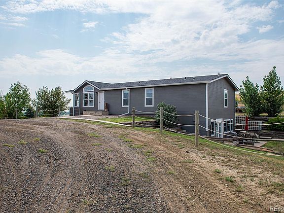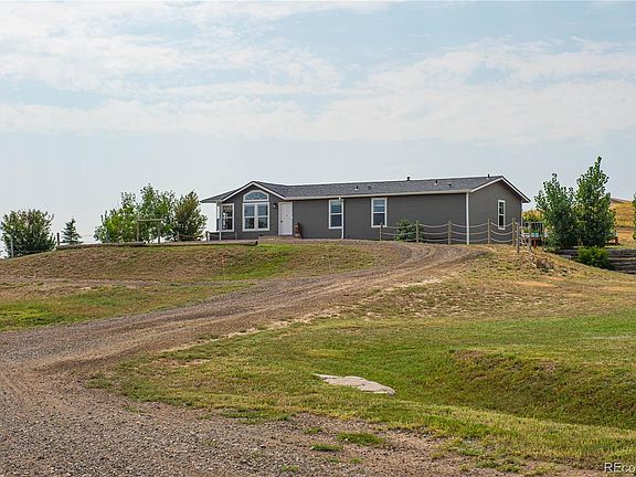 This home sits on over 35 beautiful acres in Deer Trail with endless views from all directions and amazing sunrises and sunsets! Built in 2003, it has been updated and well maintained combining modern comfort with country living. Step through the front door into a light-filled, open-concept living area leading to the kitchen with sleek vinyl plank flooring and a cozy dining room. Sellers added a kitchen island (not attached) that will stay with the home. Main level features 3 bedrooms and 2 full bathrooms, along with family room, kitchen, dining room with expansive views from all the windows! Upgrades in recent years include the vinyl plank floors, carpeting in bedrooms, interior paint, light fixtures, hardware, and quartz counters in both baths. Primary bath has dual sinks and a walk-in closet. Further updates in recent years include new roof, gutters, downspouts, exterior lighting, furnace, and water heater. Property also includes an RV water and power hook up. There are water pumps throughout the property for fire mitigation too!! Included are 3 outbuildings on the land and 1 of which has power. A shipping/storage container is currently on the property as well and will be included in the sale. The downstairs unfinished lower level offers plenty of options for creating your own space. With over 35 acres, there are so many opportunities! Even a lovely crabapple tree is there for your enjoyment, plus strawberries, rhubarb and asparagus! Furthermore, you can take advantage of tax benefits, both federal and state, if used for livestock/agriculture. This spectacular home has been well cared for by the current owners. More details - septic was inspected/pumped in May of 2024 with some repairs made in August 2024, and the well was inspected in July 2024 - reports for both the septic and well are available. Also, propane is owned not leased. Just a short drive from schools, shopping, and I-70. A must-see!!