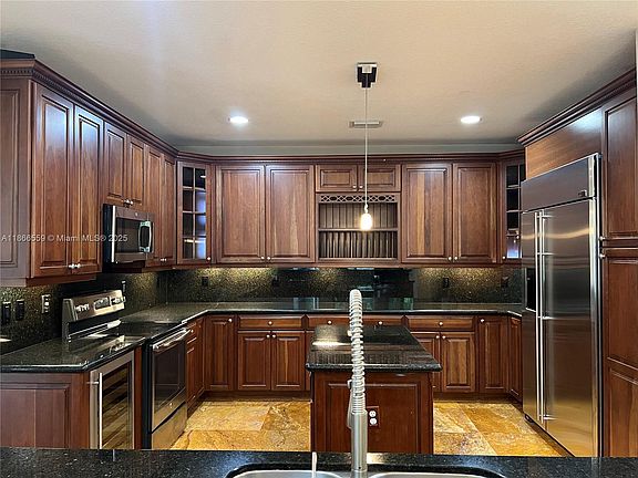 "WOW MOVE IN WITH ONLY TWO MONTHS IF YOU HAVE GOOD CREDIT". Magnificent 5BR/4BA home in the secure community of Cutler Cay. Features marble floors and European oak wood on stairs and second level, wrought iron door and staircase, and French doors. Gourmet kitchen with stainless steel appliances, wine cooler, and built-in sound and intercom systems. Property boasts a beautiful, large balcony accessible from the master bedroom. Luxurious master bath includes tub with Roman columns, separate shower, toilet, and bidet. Additional highlights include a bedroom and full bath on the first floor, laundry room, under-stair wine/storage area, two A/C units, and patio with built-in BBQ. Spacious master suite with walk-in closet. Resort-style clubhouse. Conveniently located near Black Point Marina.