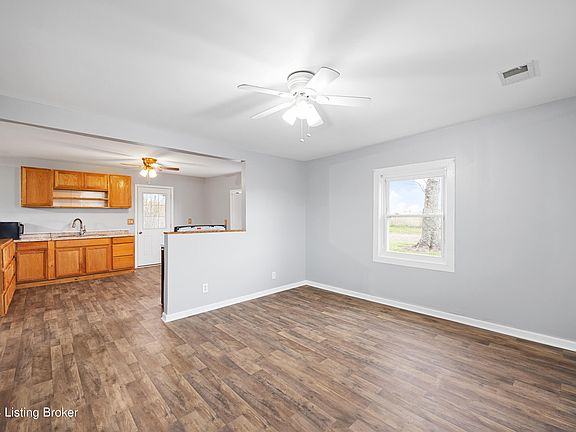 This charming 2-bedroom, 2-bath home sits on a scenic 1.51-acre lot with stunning views. The freshly painted interior now features brand-new, high-quality laminate flooring, combining style and durability throughout. A reliable metal roof ensures peace of mind, while the kitchen boasts warm wood cabinetry and flows seamlessly into a cozy dining area. Both bathrooms include tiled showers, with a double vanity in the master for added convenience. Outside, the fully fenced backyard is perfect for pets or entertaining, and a shed provides extra storage space. Call today to schedule your private showing!