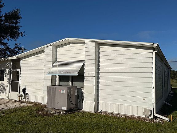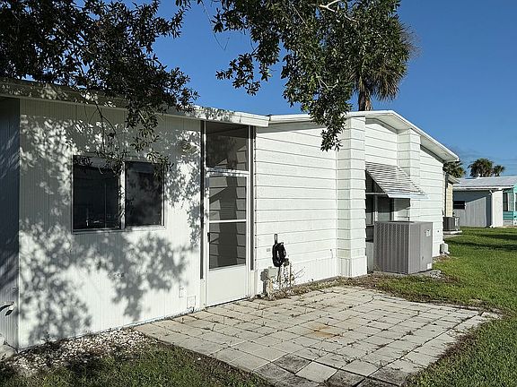 Totally Furnished in a homey Comfortable style. Fully equipped with Refrigerator, ice maker, dishwasher, stove and built in microwave. In-home laundry room with compact washer / dryer and plenty of cabinets. 2 bedrooms with brand new mattresses. Bedrooms feature large closets with mirrored doors much more storage space than most homes. The Sunroom is newly removed and has a great view of the pond across the street - a perfect place for coffee or cocktails. Fully screened Lanai with shades and a lockable shop space with Leitrim and water. The Lanai front wall is removable for storing your golf cart. The Carport and Lanai were rebuilt in 2023. PLUS - NEW METAL ROOF installed Oct 2025. The Community feature many amenities for you to enjoy and the location puts only a few hundred feet from then all.