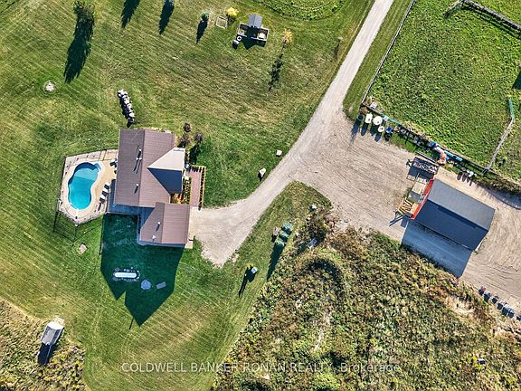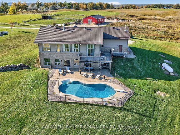 Welcome to your very own spectacular retreat in the picturesque rolling hills of Mulmur set on 26 acres. This 3 plus 2 bedroom stunner bungalow has so many upgraded & fabulously unique features giving you a modern graceful farmhouse feel, which includes soaring 12 foot ceilings, open concept kitchen, large bedrooms, gorgeous primary bedroom with motorized blinds, a true spa like bathroom en-suite, beautiful brick wall features, a walk-out lower level, complete with a cozy family room, 2 more bedrooms & a newer bathroom with a walk-in shower. Outside, you will find a lovely professionally landscaped backyard oasis with an inground pool that has a new liner, filter, pool heater & pool cover that screws into the deck, all in 2022. This property is perfect for your hobby farm boasting a modern barn with 3 paddocks with shelter, a horse wash bay with infrared heat, a heated & insulated room, a shower & a professional motocross track. More features include a metal roof, upgraded roof vents, motorized blinds in living room, attached oversized insulated garage with wood fireplace, stairs to basement & plywood walls & ceilings. Perfectly located within 12 minutes to Mansfield Ski Hills, 12 min to the amenities of Shelburne, 19 min to Alliston hospital which is undergoing a huge expansion, 4 min to the famous Mrs Mitchell's fine dining restaurant & 52 min to Brampton. Bonus. Only a few min away is Murphy's Pinnacle Lookout which is part of the Bruce Trail network and located within the Boyne Valley Provincial Park.