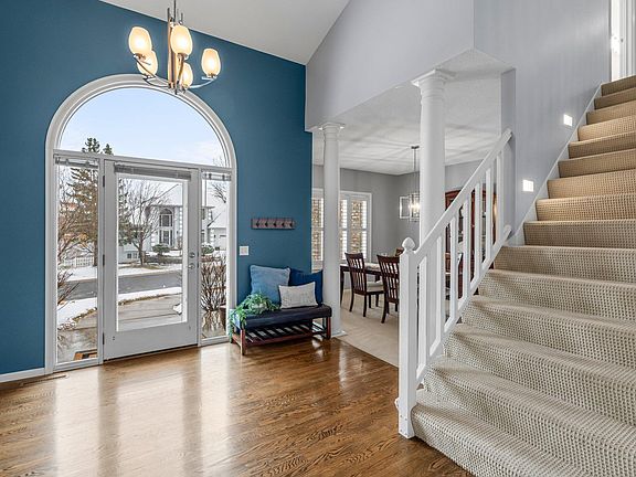 Open House Canceled Today! Discover this stunning 4-bedroom, 4-bathroom home situated in a quiet cul-de-sac in Maple Grove. Enjoy close proximity to Fish Lake, Weaver Lake, Rice Lake, numerous parks, and a variety of shopping and dining options. Step into the grand foyer, featuring timeless wood flooring, soaring 18-foot vaulted ceilings, abundant natural light from expansive windows, and a convenient coat closet. Adjacent to the foyer, a versatile den offers the perfect space for a home office, study, or additional living area. This inviting room is enhanced by French doors, plush carpeting, a large window with wood blinds, and a closet for extra organization. The impressive living room boasts 18-foot ceilings, soft carpeting, a striking gas-burning fireplace, and floor-to-ceiling windows that flood the space with natural light. Decorative columns add architectural charm, making this an ideal space for entertaining or relaxing. The main floor also features a formal dining room, complete with an elegant chandelier, decorative columns, shutters, and plush carpeting for added comfort. The thoughtfully designed kitchen is a chef’s dream, featuring wood flooring, a stylish tile backsplash, granite countertops, and stainless steel appliances, including a Bosch dishwasher and a Samsung Smart Fridge (new in 2022). The spacious center island, under-cabinet lighting, and ample cabinetry enhance its functionality. Adjacent is the informal dining area, offering easy access to the 3-season porch—perfect for indoor-outdoor entertaining. The mudroom includes a closet, wall hooks, and a bench for storage and organization. It leads to the attached garage along with a well-appointed laundry room, featuring an LG washer and dryer (new in 2019), a utility sink, cabinetry, and a built-in drying rack. A nearby ½ bathroom with wood flooring and a single vanity adds convenience to the main level. The main-level primary suite offers a luxurious retreat with a private balcony, accent wall, French doors, a ceiling fan, and plush carpeting. The en-suite bathroom boasts tile flooring, an 11-foot domed ceiling, a walk-in shower with intricate tile detailing, a soaking tub, a spacious double vanity, and an 11x8 walk-in closet with built-in shelving. Upstairs, the 16x9 loft area overlooks the living room and includes a large window showcasing beautiful backyard views. Built-in bookshelves provide additional storage and display space. The second and third upper-level bedrooms offer comfortable carpeting, ceiling fans, and large windows. They share a Jack-and-Jill full bathroom, which features a split design for added functionality. It is complete with tile flooring, a double vanity, a combination tub and shower, and a linen cabinet. The lower level features an expansive open-concept family room with a cozy wood-burning fireplace with a stone surround, large windows, plush carpeting, and walk-out access to the backyard patio. The spacious recreation area, connected to the family room, features colorful carpeting, built-in wood cabinetry with decorative posts, and a closet for additional storage. A nearby corner den space serves as an excellent game area or reading nook. The lower-level fourth bedroom, measuring 21x12, offers a built-in desk and dual walk-in closets. A nearby ¾ bathroom includes tile flooring, a two-tiered spacious vanity, and a luxurious 3x5 walk-in tiled shower. A bonus 13x11 exercise room completes the lower level, featuring rubber flooring and a fully mirrored wall. The exterior is equally impressive, featuring a maintenance-free 3-season porch, a fully enclosed private yard with a chain-link fence, and serene pond views. A backyard patio provides additional outdoor relaxation space. The attached 3-car garage ensures year-round vehicle protection and includes EV charging, installed in 2022. Additional upgrades to the home include an Ecobee smart thermostat, new central air (2021), a new water heater (2024), and a new water softener (2020).