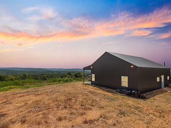 Enjoy the breathtaking view from the front porch of this newly built barndominium situated on 106 +/- acres just 10 minutes from Clifton Marina and the TN River. The 3 bedroom, 2 bath barndo is complete with city water, central heat and A/C  and wood burning fireplace. Complete trail system surrounds the property, making easy access. Multiple springs can be located in the valley behind the cabin which creates excellent hunting opportunities. Deer and Turkey are prevalent throughout the property. A magnificent view from the front porch of the cabin with miles of uninterrupted field of vision makes this a one of a kind property.
