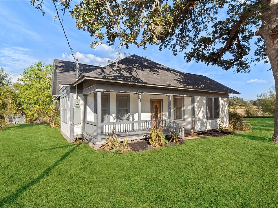 Welcome to your slice of small-town Texas charm! Nestled along the tree-lined streets of Dime Box, this cute remodeled farmhouse offers a picturesque retreat from the hustle and bustle. The home's charming character is immediately apparent with its classic shiplap siding! There's a new roof, HVAC, and carpet too! Step inside and feel that old quirky charm, with 10 foot tall ceilings, warmth and comfort of an old farmhouse. A lovely covered front porch is the perfect spot to enjoy your morning coffee and take in the tranquility of the large shade tree and the peaceful neighborhood. This home will provide peace of mind and is ready for you to move in and enjoy. The spacious lot offers endless possibilities for a vibrant garden, a workshop, or for pets!! Experience the best of both worlds—quiet country living with easy access to the city. Situated just off of Highway 21, you're only an hour from Austin, 35 minutes to Bryan/College Station, and a short 30-minute drive to Bastrop or Elgin. Come and see why this charming Dime Box farmhouse is the perfect place to start your next chapter!!
