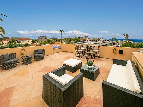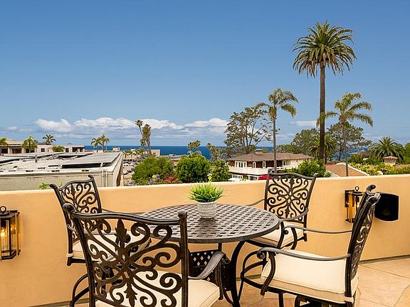 Exquisitely Captivating Furnished Rental Home with Breathtaking Ocean Views! Centrally located in a sought-after area famed La Jolla Cove just moments from world-class dining and shopping, this 5BR/3.5BA, 2,825 sqft residence emanates whimsical castle vibes with gorgeous exterior stonework, rounded tower, and elegant balconies. Fall in love with the upscale aesthetic, which dazzles with stunning walnut flooring, an open flowing layout, an expansive living room, and a gourmet kitchen featuring stainless-steel appliances. Venture outdoors to find a spacious patio with soothing fountains, a fireplace, and verdant greenery. Entertain guests on the rooftop deck, while admiring the intoxicating panoramic ocean views. Blissfully relax in the oversized primary bedroom with a private balcony, tons of closet space, and an ultra-luxe en suite boasting a soaking tub, separate shower, and dual sinks. Other features: laundry area, wine cellar, near beaches, cafes, and freeways, and much more! Call for a tour!