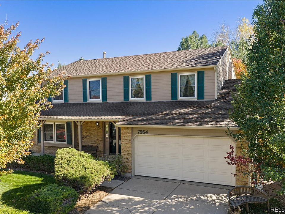 This well-maintained Southbridge gem sits on an oversized lot in a highly sought-after Littleton location with great neighbors and convenient access to everything. Enjoy nearby McLellen Reservoir with scenic nature trails, parks, shopping, hospital, highway access, and light rail—all just minutes away. The inviting tree-lined street and covered front porch set the tone for the warm, welcoming interior. Inside, discover both formal and informal living spaces, including a formal living and dining room combination perfect for entertaining. The eat-in kitchen offers ample cabinetry, a peninsula island for extra seating, and a dining nook that opens to the private backyard and covered patio. The cozy family room features a beautiful wall-to-wall brick fireplace surround. Upstairs, you’ll find four generously sized bedrooms, including a primary suite with extra closet space and a private en-suite bath. The upper-level laundry closet adds everyday convenience. The basement includes one finished room—ideal for a home office or guest bedroom—with additional framed and walled space ready for your personal touch or use as storage or a home gym. The expansive backyard is surrounded by mature trees and even features a basketball court in the corner. A rare find in an unbeatable location—ready for you to make it your own.