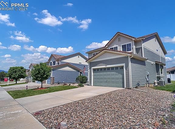 This gorgeous 2 story home is located in a great community with a Metcalfe park, elementary school, open space, and easy access to restaurants and shopping and is loaded with upgrades and serious pride of ownership! The entire main level has beautiful, upgraded wood flooring. The large living room has a gas fireplace with built-ins on both sides, a tray ceiling, and windows that allow your main level living room to be flooded with natural light. The dining room walks out to the backyard where you will find beautiful landscaping and a newer hot tub! The kitchen has upgraded cabinets, loads of storage and counter space, a large island with plenty of seating and beautiful countertops. The main level also features a half bath and laundry room. Upstairs you will find the master bedroom with a nicely appointed 5 piece master bath and the same beautiful flooring found on the main level. The master bedroom also has a tray ceiling, large windows that allow natural light to fill the room. At the top of the landing you will find a nice buffet and a large flex room that is big enough to be an entertainment space and/or office space. There are also two additional bedrooms and a full bathroom. This home is an easy commute to many of the attractions that Colorado Springs has to offer as well as commuting to Fort Carson, Cheyenne Mountain, Peterson AFB, Schriever AFB and the USAFA.