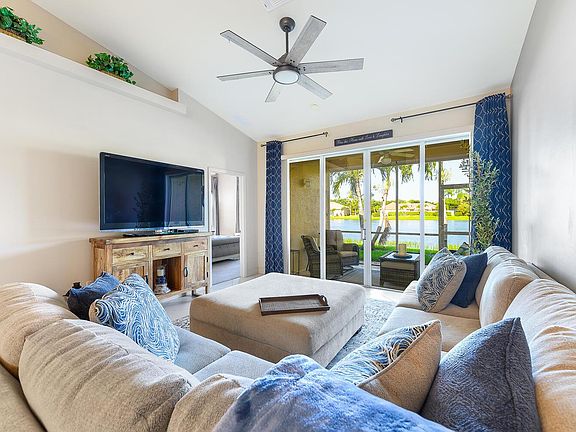 The 2 bedrooms have comfortable queen beds. The primary suite has a 5 piece bath, 2 walk in closets, and a water view. The Den has extra seating and a desk, with doors for privacy. The kitchen has all new appliances, an eat-in nook, and everything you need. There is also a separate dining area and open living space with a huge, comfy sectional. Finally, you'll have a garage, laundry room, and nice neighbors around you.