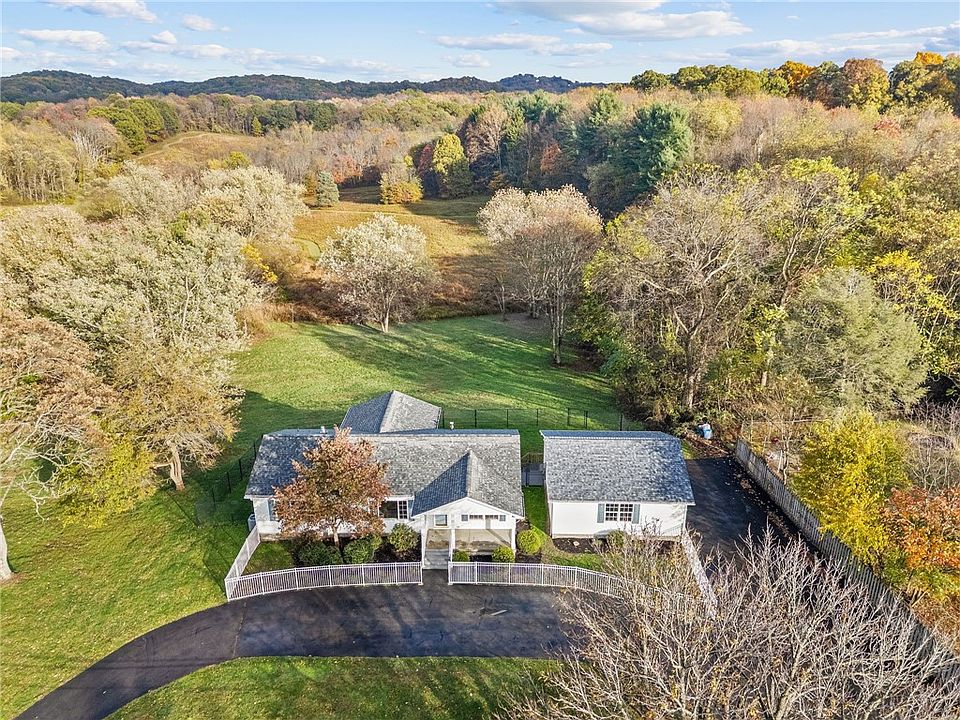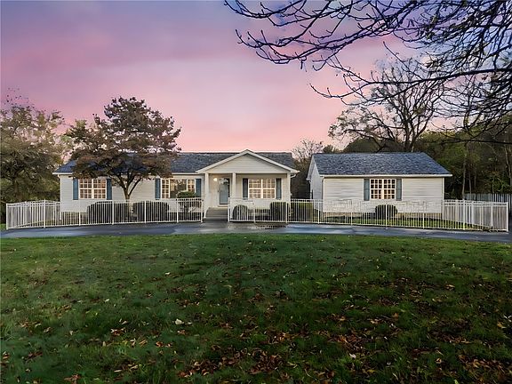 Welcome to this spacious ranch-style modular home set on over an acre of beautiful land! The circular governor’s driveway offers an impressive entrance and plenty of parking. Inside, you’ll love the open-concept layout connecting the living room, dining area, and kitchen—perfect for entertaining or gathering with family. Just off the back, a stunning sunroom with wraparound windows provides panoramic views of the hillside and property, creating a peaceful space to relax year-round. The main level features three comfortable bedrooms, including a primary suite with its own private bath. Downstairs, the expansive finished basement offers even more living space with three additional bedrooms and a flex room ideal for a home office or gym. Enjoy your mornings on the charming front porch or unwind in the partially fenced yard. Updates include new flooring throughout, a new furnace, and a new AC unit. A two-car detached garage completes this fantastic property.