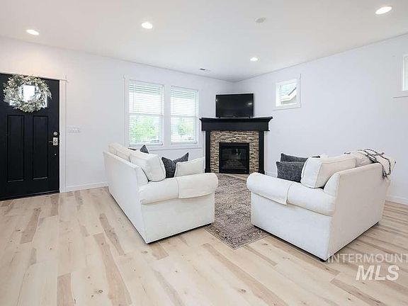 Welcome to this beautiful home in the highly desirable SE Boise community - just minutes from Micron, Lucky Peak Reservoir, and the Foothills. This home features 3 bedrooms, 2.5 baths, a loft, and attached 2 car garage - a perfect blend of modern comfort, thoughtful design, and unbeatable location. Step inside to discover a bright, open floor plan with fresh paint and brand-new flooring throughout. The inviting living room flooded with natural light features a cozy gas fireplace. The spacious kitchen is complete with quartz countertops, stainless steel appliances, a gas range, pantry, and breakfast bar. Upstairs, the primary suite offers a private retreat with a walk-in closet and en-suite bathroom. Two additional bedrooms share a full bath, and a versatile loft provides the perfect area for a home office, playroom, or second living area. Enjoy added value and peace of mind with a whole-home water purification system. Best of all, no front neighbors. Instead, enjoy beautiful views of open green space and easy access to the community pool - just steps from your front door.