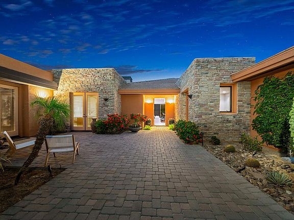 Step into refined desert luxury with this beautifully updated residence in Palmilla, one of La Quinta's most prestigious guard-gated communities. This sought-after Palo Verde model offers 4,296 sq. ft. of elevated living space, including 5 ensuite bedrooms and 6 baths, with a private guest casita featuring a kitchenette--perfect for hosting with comfort and privacy.Set on a generous 15,246 sq. ft. south-facing lot, the home blends sophisticated design with serene outdoor living. The open-concept floor plan showcases zoned living areas, a stylish step-down bar, and a cozy fireplace, seamlessly connecting to the gourmet kitchen and morning room. The kitchen boasts custom cabinetry, built-in Thermador appliances, and a Wolf coffee bar, tailored for both entertaining and everyday indulgence.Walls of sliding glass open to a private resort-style backyard, where custom pavers surround an oversized pool with sundeck, separate spa, outdoor fireplace, and BBQ island. Ideal for entertaining or tranquil relaxation, the outdoor space is a true extension of the home's luxury lifestyle.The primary suite is a private retreat with direct outdoor access, spa-style wet room shower with soaking tub, and a generous walk-in closet. An adjacent bedroom makes for a perfect home office or den.Smart home upgrades include motorized awnings, dimmable lighting, zonal climate control, and fully integrated pool and spa automation--all operable from your iPad or smart devise for effortless convenience.As a Palmilla resident, enjoy guard-gated security, meticulously maintained front landscaping, and scheduled exterior painting, all set against award-winning lake views and dramatic desert scenery. Optional Citrus Club memberships offer access to championship golf, tennis, fitness, and dining. Located moments from upscale shopping and dining, this home delivers both elegance and ease in one of La Quinta's most exclusive settings.