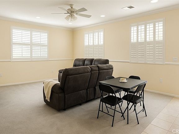 Welcome to 7969 Mickelson Way, Hemet — located in the highly sought-after Four Seasons 55+ community! Nestled along the 9th fairway, this beautiful home offers over 1,800 sq. ft. of comfortable living space featuring 2 spacious bedrooms and a versatile office that’s perfect for a reading nook or hobby room. Enjoy entertaining in the large dining area with tile flooring or cooking in the inviting country-style kitchen, complete with a generous center island, abundant cabinetry, and a seamless connection to the family room. Plantation shutters adorn every window, adding charm and elegance throughout. The primary suite includes a dual-sink vanity and a walk-in shower, while the indoor laundry room provides convenient access to the attached 2-car garage. Step outside to the covered patio and take in relaxing views of the lush 9th fairway — ideal for enjoying your morning coffee or evening sunsets. The Four Seasons community offers resort-style amenities, including scenic walking trails, a clubhouse, an 18-hole golf course, swimming pools, and so much more. Don’t miss your chance to own this beautiful golf course home — it won’t last long!