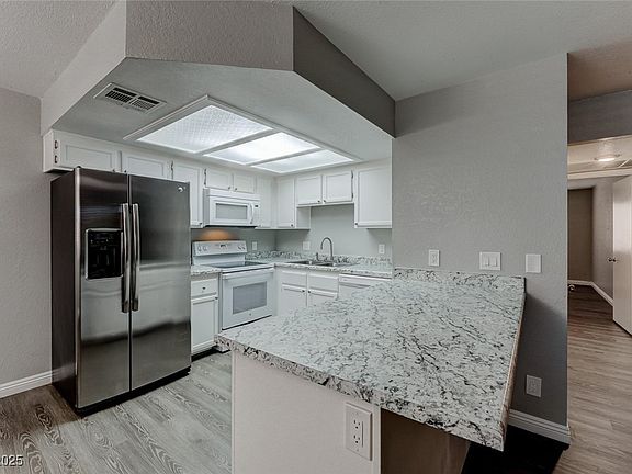 Welcome to your new home! This stunning 2-bed, 2-bath condo offers the perfect blend of comfort and style. Enjoy a spacious open floor plan with laminate floors and neutral paint that create a warm, modern feel. The kitchen features white cabinets, a breakfast island, and a bright dining nook. Relax in the cozy living area with a wood-burning fireplace. Includes washer, dryer, fridge, dishwasher, and microwave. The community offers a pool and spa perfect for hot summer days! Conveniently located just minutes from the freeway, 3 miles from Boca Park in Summerlin and Mountain View Hospital, and only half a mile from Kellogg Zaher Park with picnic areas, a playground, soccer fields, a track, and a tennis center. Don't miss out your perfect home awaits!