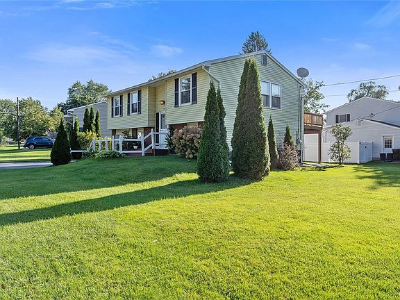 Fabulous find in Forest Hills! Lovely raised ranch home, on a large corner lot in a great location! Come up the double wide driveway and enter through the open front porch. Upstairs, beautiful genuine hardwood floors throughout! Light and bright kitchen, with breakfast bar, and open living/dining room combo with a door to your large large deck - great space to enjoy or entertain! Three bedrooms, with good sized closets and a full bath with tub/shower. Downstairs, you'll love the easy access from your attached garage, great bonus room for storage or home office, large laundry/utility room with 2021 furnace, stylish 1/2 bath and a spacious den with electric fireplace feature and door to the large, lovely yard! There is so much potential in this home with a great layout and convenient location! Big, level corner lot gives you lots of outdoor space to enjoy! All appliances - including washer and dryer stay! This awesome home, in the Liverpool Central School district is ready to be your 'home sweet home'! Taxes are shown without any exemptions.