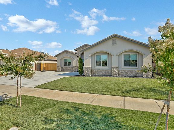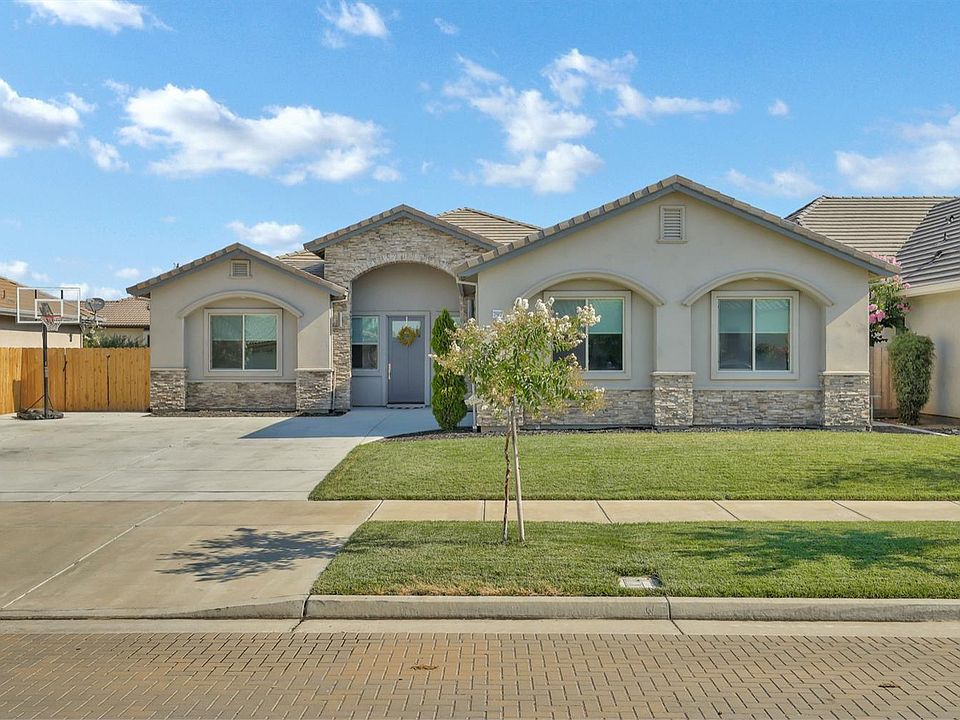 Follow along the cobblestone street to this exquisite custom modern home, featuring 4 bedrooms and 3 baths. This home offers a spacious open floor plan, a luxurious kitchen featuring white shaker cabinetry, stunning countertops, stainless steel appliances, and a water softening system. Custom details throughout such as 10 ft. ceilings, crown molding, home office with built-in cabinets, and ample recessed lighting, making this home look elegant yet relaxing and inviting. As you enter the master suite, you'll be welcomed by a spacious floorplan with backyard access and ensuite with dual sinks, soaking tub, and separate glass shower. Upon exiting the master suite into the backyard, you'll be greeted by a covered patio with ceiling fans, a relaxing pool with waterfalls, and a lawn area perfect for the kids to play. Don't miss this opportunity to view this home in the highly sought after neighborhood of Palm Grove Estates.